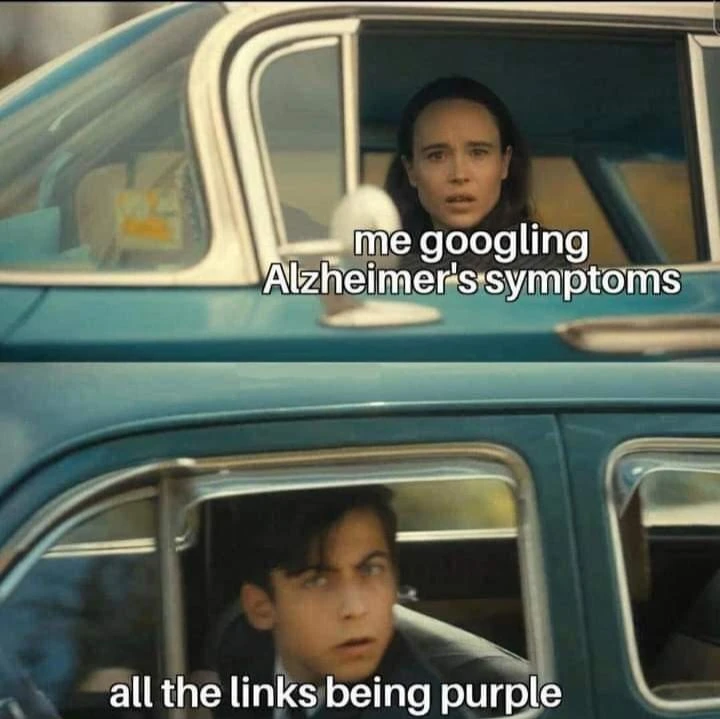 When you have a family history of Alzheimer’s and also inherited red-green color blindness from the same family member so you can’t see purple 🙃