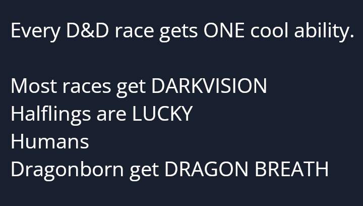 arrow-up11arrow-down1imageEvery race gets one cool abilityDefenestrator@aussie.zone to RPGMemes @ttrpg.network · 2 years agomessage-square4linkfedilink