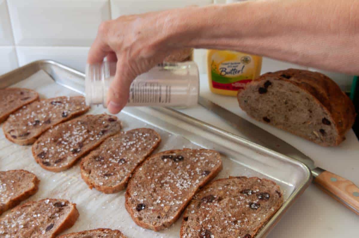 Reminds me of those thin rustic slices with big sugar that you see at fancy brunch joints.